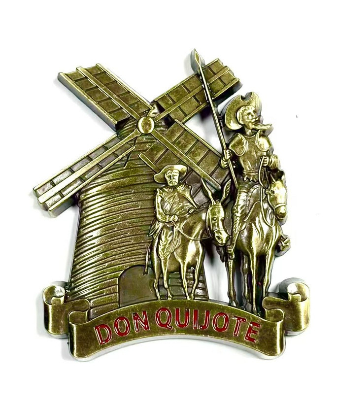 Imán Don Quijote y molino,aleación zing 8*6.5cm.